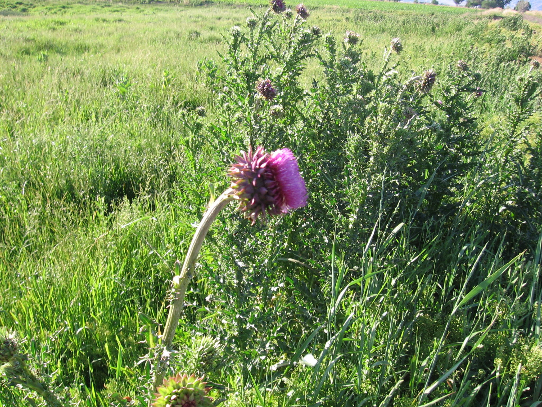 That’s called nodding thistle. Very pretty but on the noxious weed list.