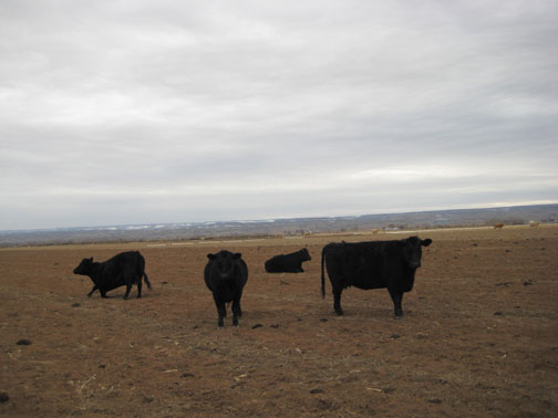 Now, to bring all of you up-to-date, all the corn fields surrounding the farms in our area are always pastured off by the cows, which spend the summer and fall in the mountains.   Once the snow comes the cows come off the fall pastures and onto the farm ground to eat and have their babies.