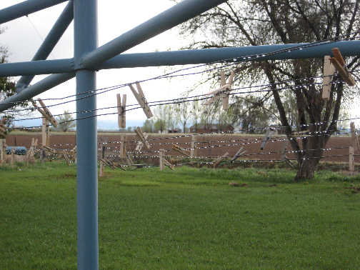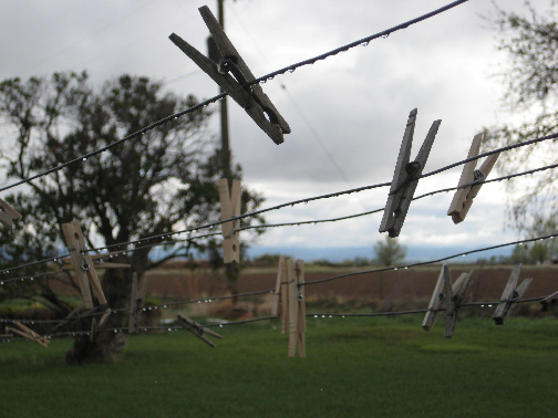 The day warmed up rapidly, causing melted snow to hang in droplet on the clothes lines
