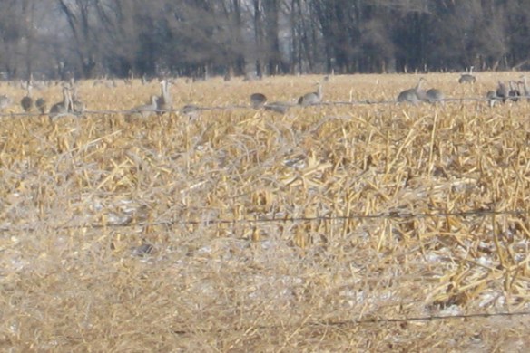 7. Trust me, they’re Sandhill Cranes! I know my cranes after having studied them for years in Nebraska, North Dakota, Manitoba, and Saskatchewan. The red on their heads isn’t always srikingly obvious from a distance.