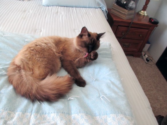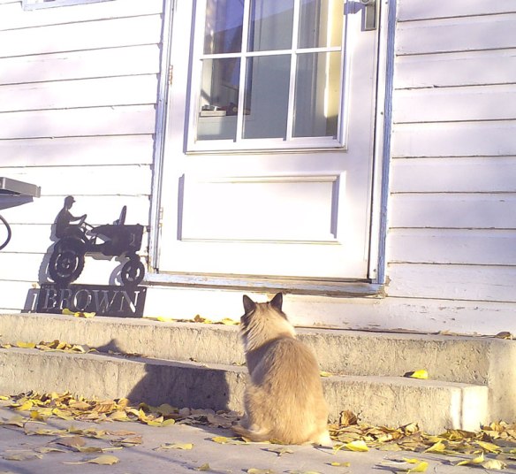 1. Our cat Latte says to Cai-Cai, “One time I stayed out all night and an owl nearly got me. I came home with a triangle of skin out of my back haunch. Now mommie and daddy won’t let me go outside unless they are right with me. Coyotes, foxes, bobcats and eagles will eat us too.”