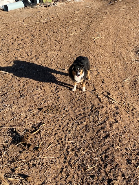 I grabbed my little canine and hoofed it fast toward the farmyard. She stayed stock still, snorting and pawing the ground until we made it under the fence.
