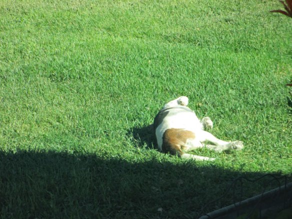 I gobbled my stick of chicken jerky in three bites (I didn’t want Mindy to get any) then headed toward the lawn.