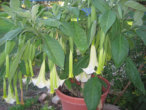 As humans we get to reap the reward of the plants need to reproduce and therefore save the next generation. The Super-Nova Brugmansia plant has over 65 blooms; I’ve never seen so many on one plant before.