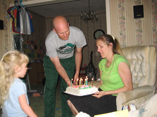 Linki was so proud of the cake, plus she MADE me five presents: two pages colored in her coloring book, a favorite bracelet wrapped up for me, a home-made butterfly and a coupon for her to spend the night with me.