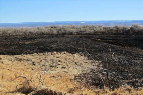 Most of it is still burned. Nothing really green there yet, but when we got to the hill pasture