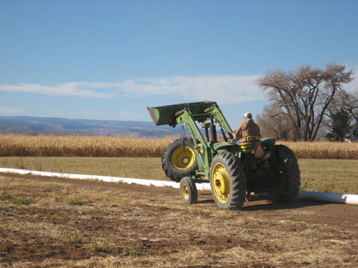 A quick ride into farm yard— get a tire and back out we all go. Boomer included.