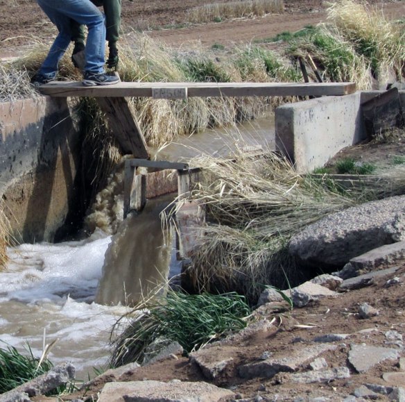 (We (Terry) must check the headgate several times a day to keep the trash out)