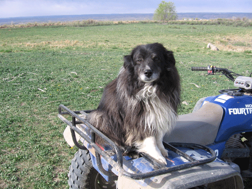 Seeing Fuzzy running alongside the four-wheeler, as we go check the water