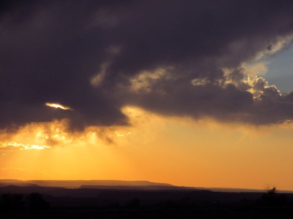 It wasn’t raining right here, but still—on our way up to change the water.  There in the clouds over the in the East was a very faint but still beautiful RAINBOW!!