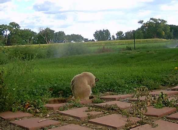 WHAT a great time I’ve been having—there are birds to chase, mice to capture and toss in the air, and grasshopper–-GREAT BIG GRASSHOPPERS! They hop AND fly.