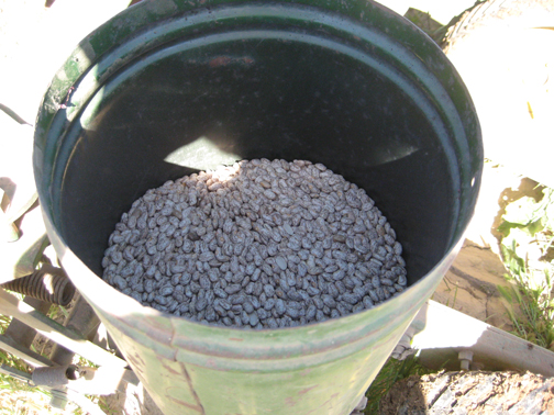 The pinto bean plants are now setting pods and the ‘new crop’ of seeds starting grow in the pod. You can see the seeds developing.